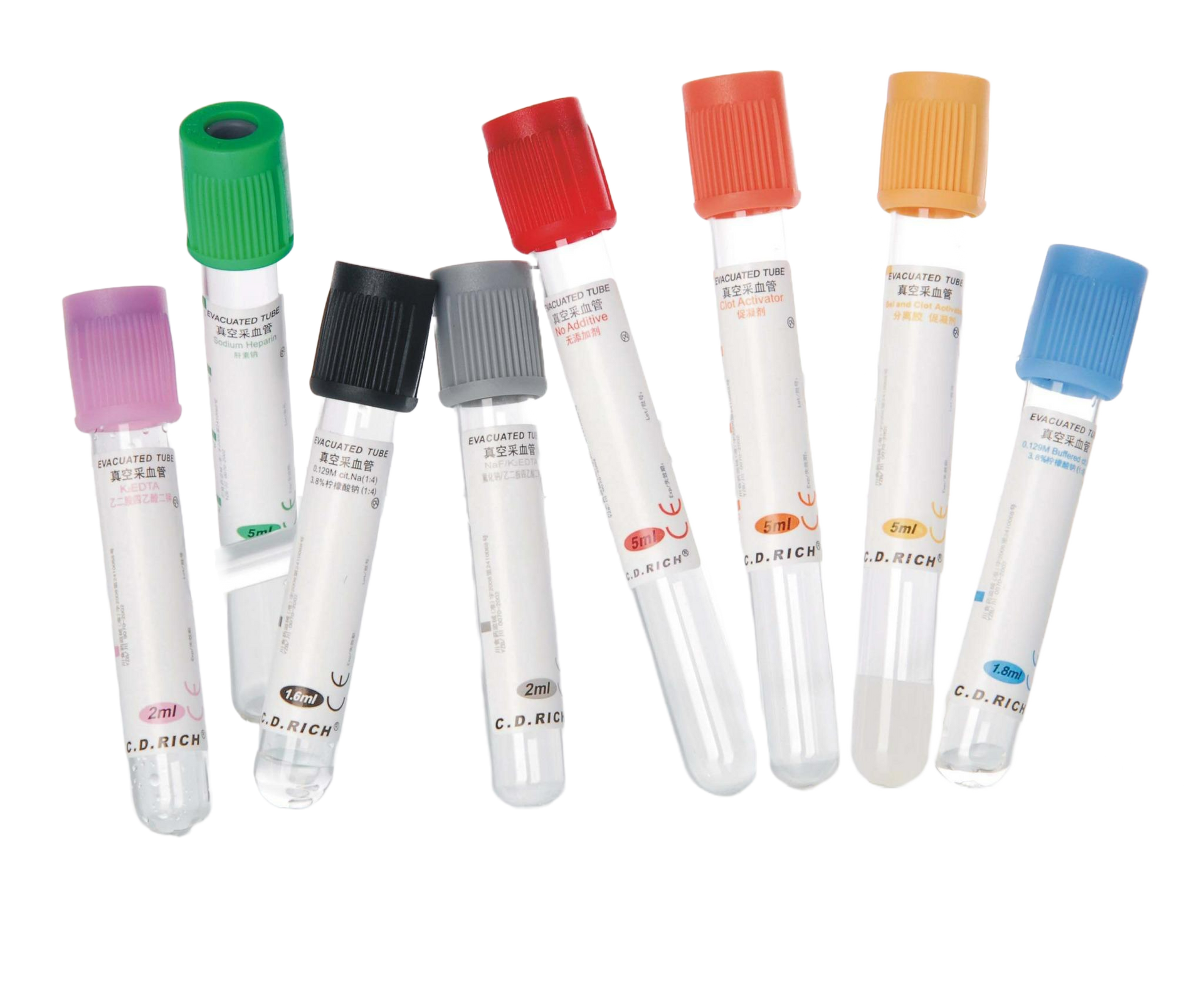 Tubos y minitubos estériles, para recolección, transferencia, almacenamiento y tratamiento de muestras de sangre venosa en laboratorio.